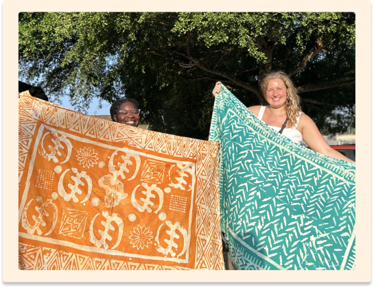 Lors de cet atelier, vous découvrirez chaque étape de création: du dessin des motifs traditionnels à l’application de la cire, jusqu’à la teinture finale.